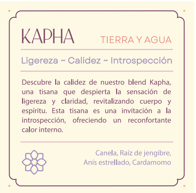 Inspirado en el dosha Kapha Una infusión intensa y estimulante que despeja la mente y despierta la vitalidad. Despierta los sentidos y despeja la pesadez. Ideal para comenzar el día, activar el cuerpo y renovar la energía.